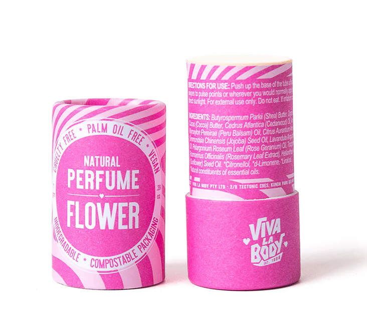 Flower is fresh, bright and softly grounded — like walking through a garden in full bloom. Earthy Cedarwood forms the base, lifted by the crisp citrus note of Petitgrain. Lavender adds a gentle floral layer, while Peru Balsam and Amyris Wood bring warmth and depth. Rose Geranium finishes the blend with a clean floral burst that lingers beautifully on the skin. This solid perfume glides on smoothly and is easy to carry in your bag or pocket. No spills. No synthetics. Just plant-based ingredients in a home compostable tube. Vegan. Palm oil free. Australian made. Same much-loved formula, refreshed packaging.